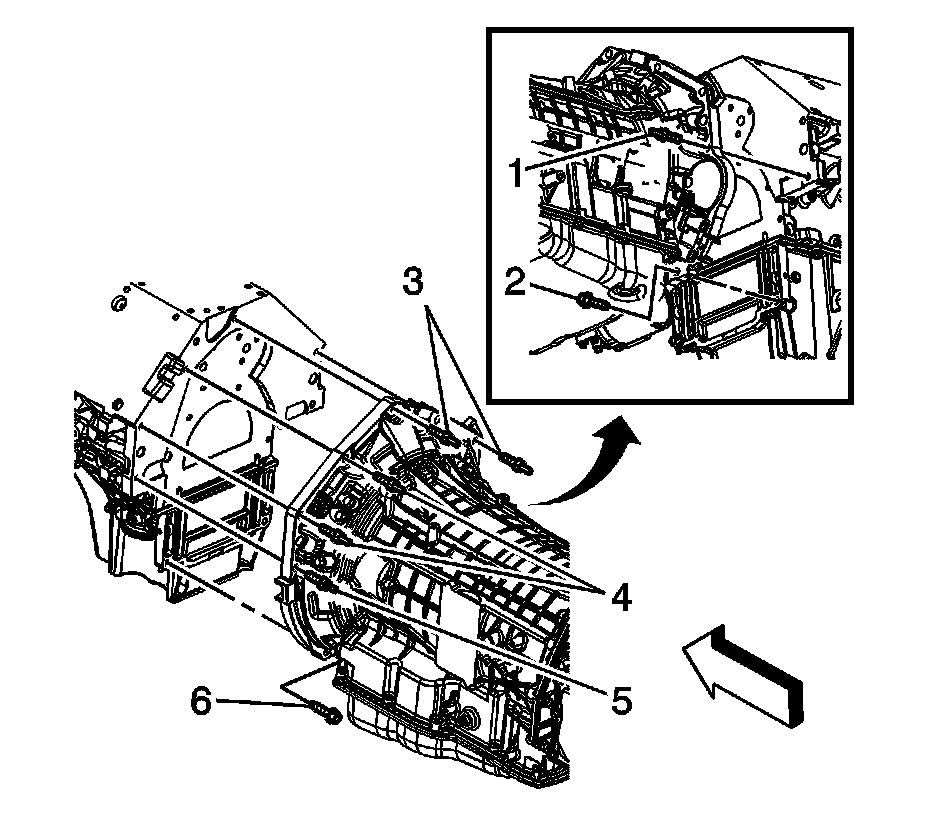 7. Install the bolts and studs (1-6) securing the transmission to the engine.