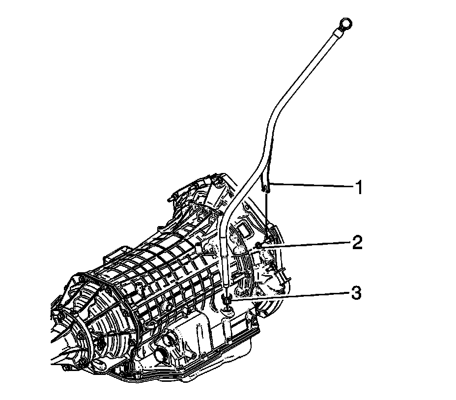 58. Remove the transmission from the vehicle while simultaneously removing the fluid filler tube from the transmission.