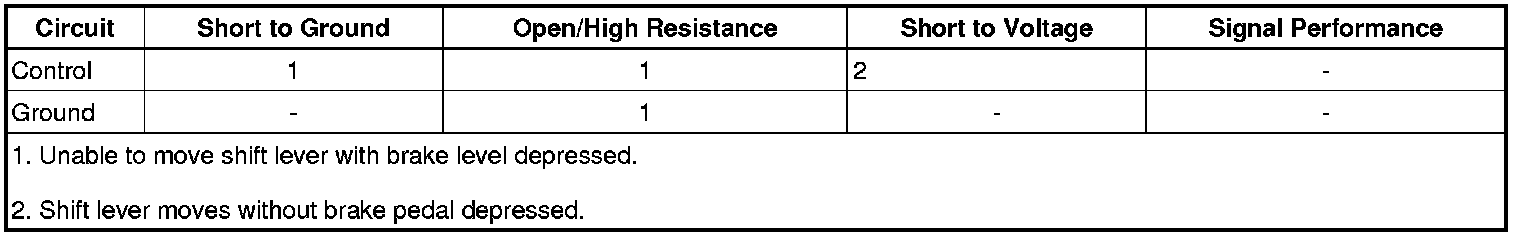 The body control module (BCM) controls the shift lock solenoid by providing battery voltage to the shift lock control solenoid. The BCM utilizes a smart driver to control the voltage supplied to the shift lock solenoid. The smart driver monitors the voltage and current flow of the control circuit.