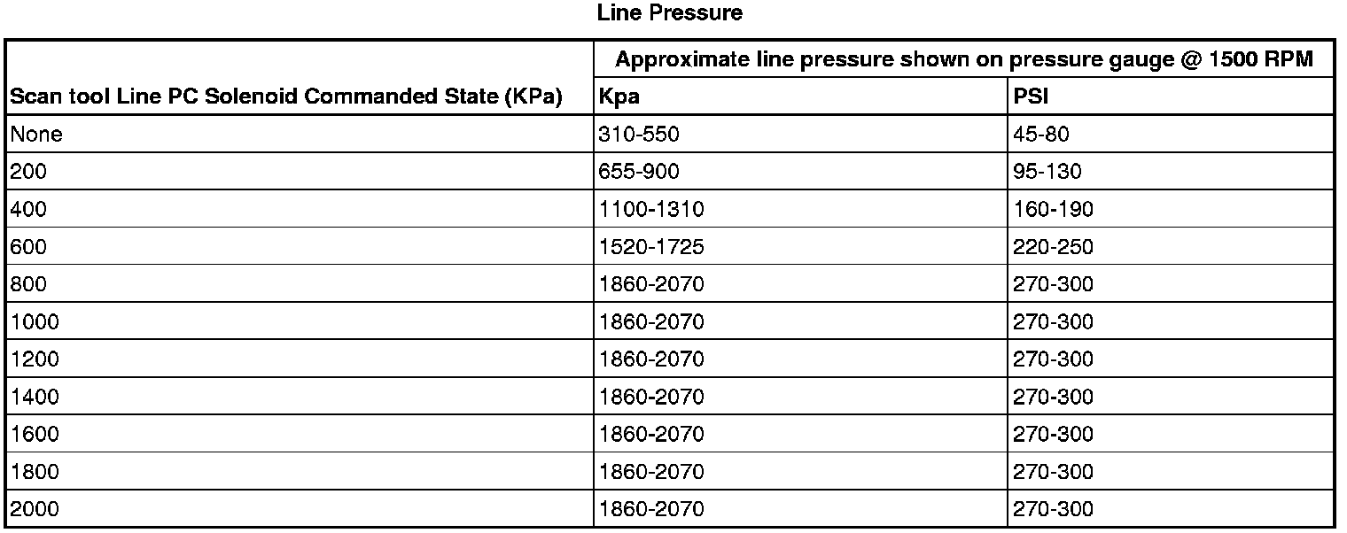 Control the Line PC Solenoid in PARK or NEUTRAL with the engine speed at approximately 1500 RPM and the TFT between 35-55°C (95-131°F). This protects the clutches from extreme high or low line pressures and ensures a consistent pump capacity.