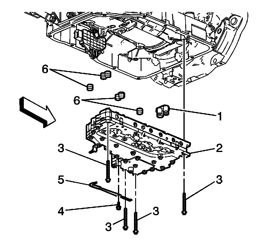 1. Remove the control solenoid valve and transmission control module assembly. Refer to Control Solenoid Valve and Transmission Control Module Assembly Replacement Control Solenoid Valve and Transmission Control Module Assembly Replacement.