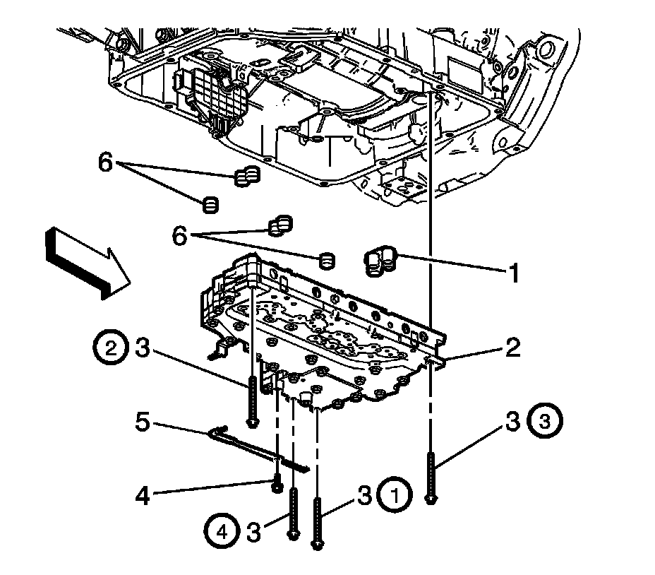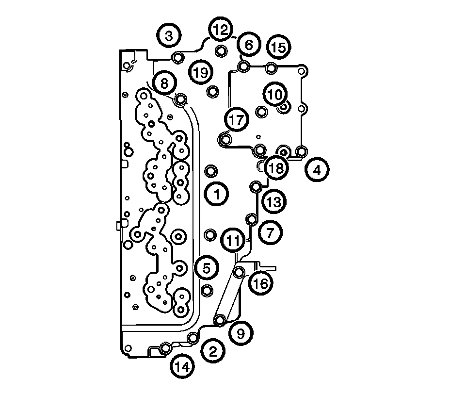 Caution: Bolt torque sequencing is critical to the proper function of the control solenoid valve assembly. Failure to follow the required sequencing may result in transmission malfunction.