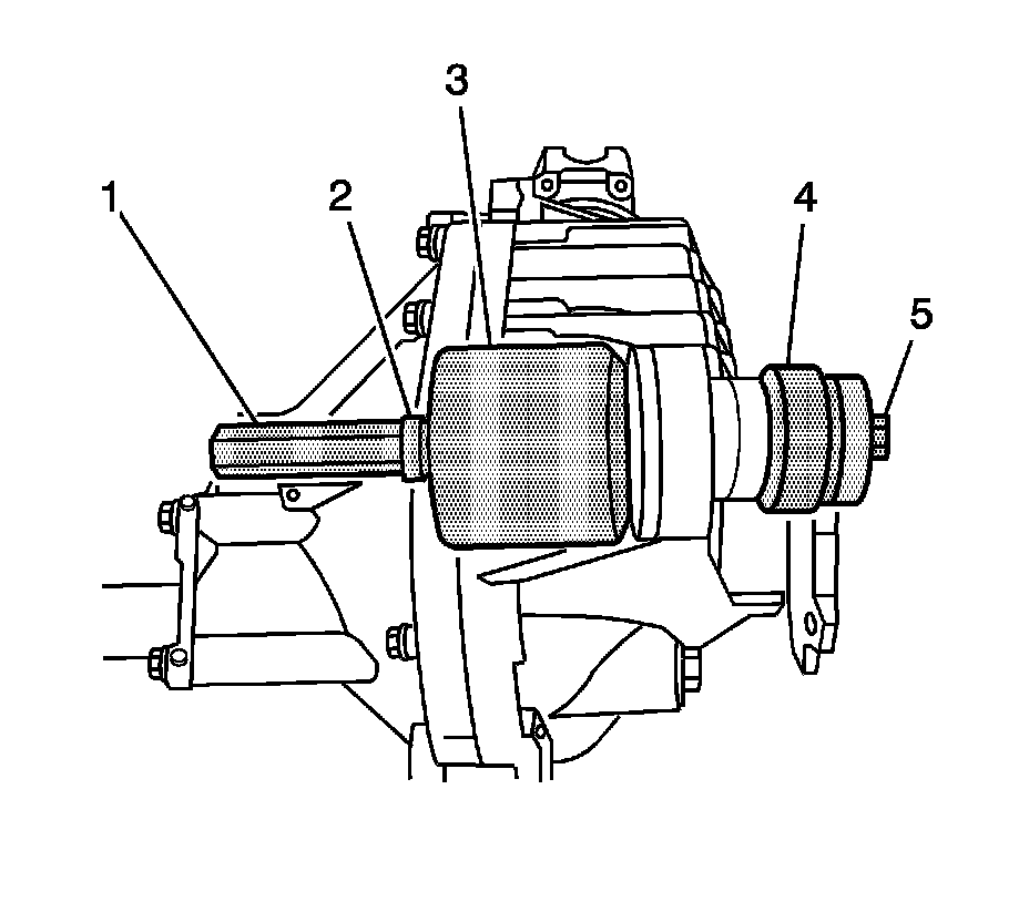 33. Using the J 36616 - remover/installer (2, 3, 4, 5) and the J 21474-18 - nut (1), install the upper differential carrier bushing.