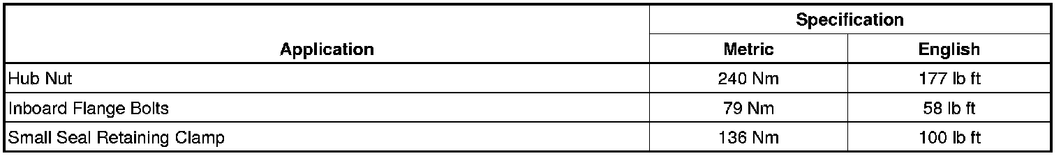 Axle Shaft Assembly: Specifications