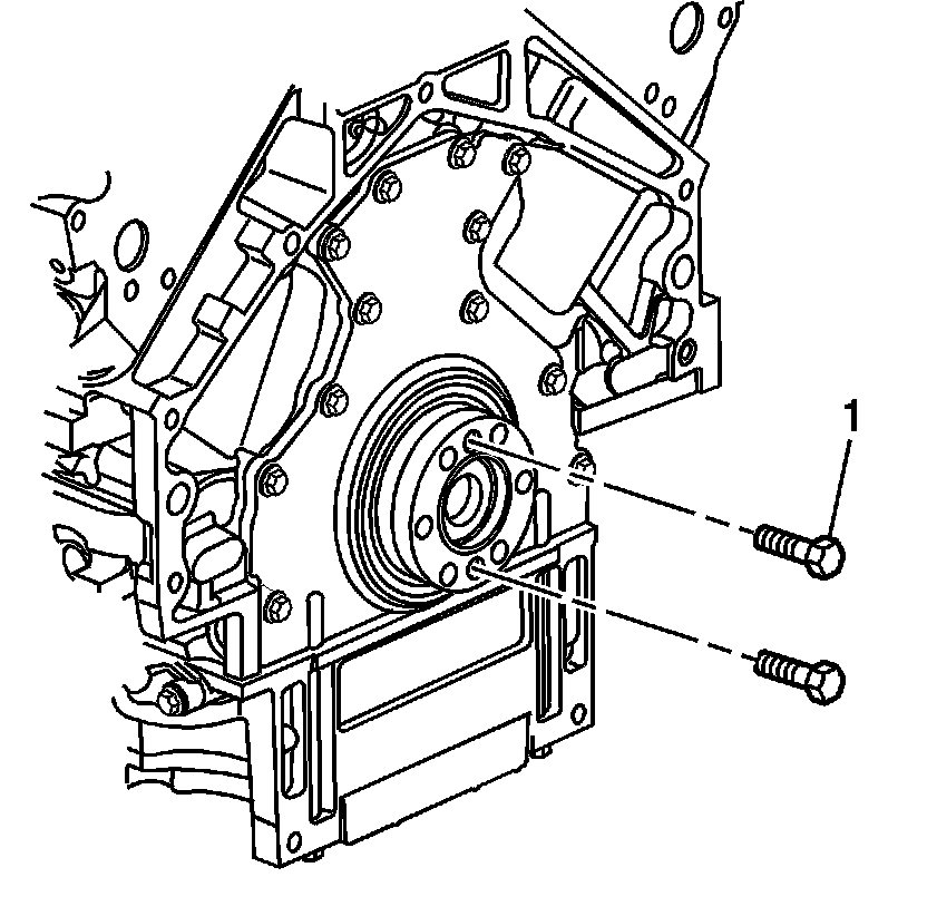 3. Apply threadlock to the threads of the flywheel bolts. Refer to Adhesives, Fluids, Lubricants, and Sealers Adhesives, Fluids, Lubricants, and Sealers for the correct part number.
