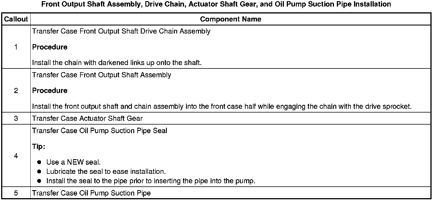 Front Output Shaft Assembly, Drive Chain, Actuator Shaft Gear, and Oil Pump Suction Pipe Installation