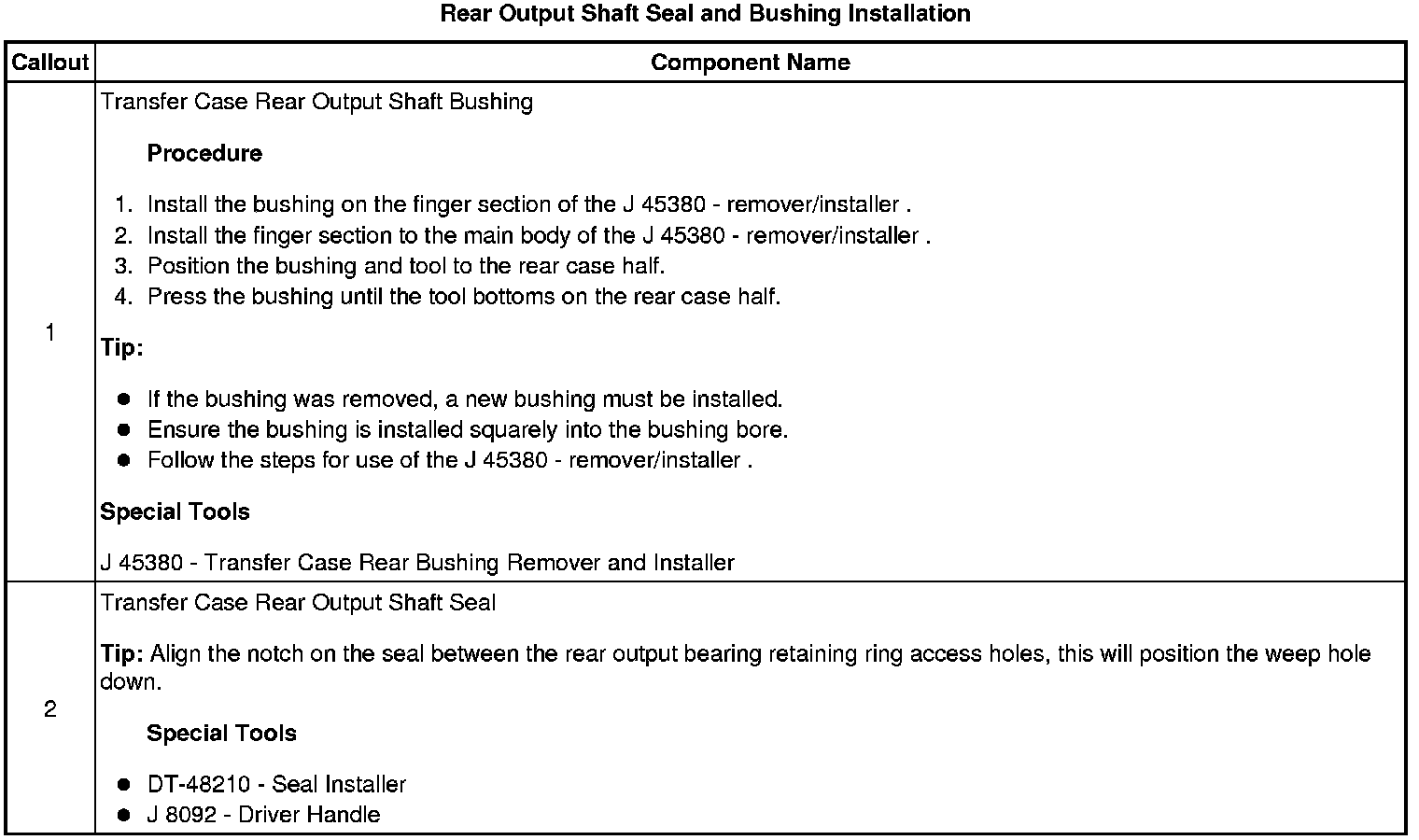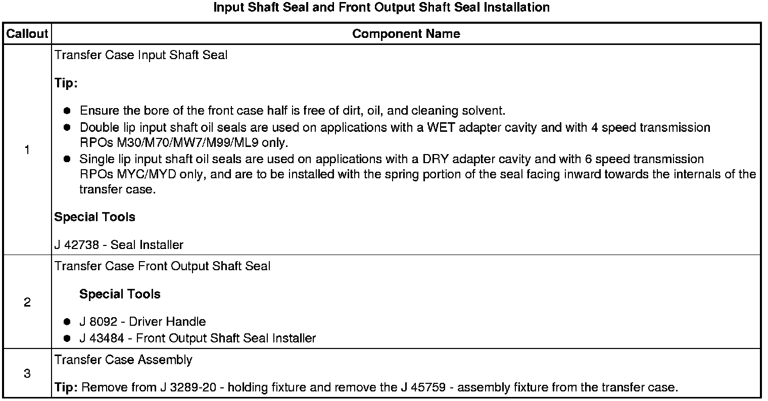 Input Shaft Seal and Front Output Shaft Seal Installation