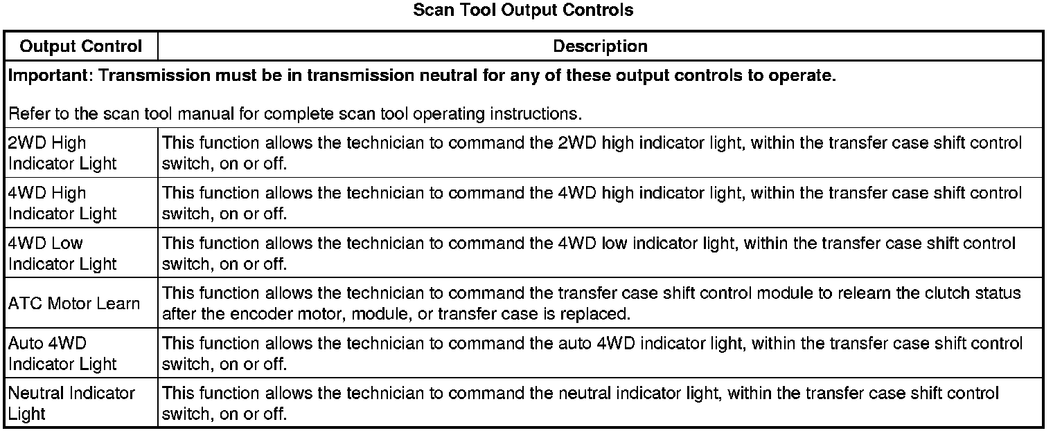Shift Control Module Scan Tool Information