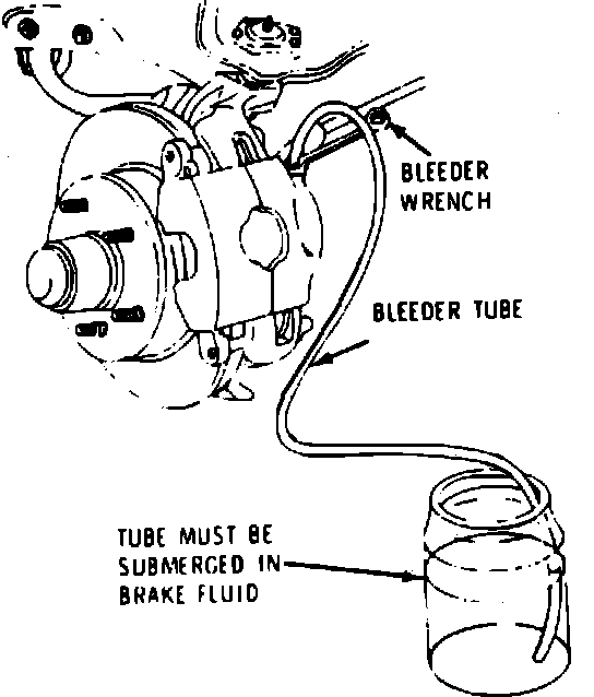 1. Loosen, then slightly retighten bleeder valves at all four wheels. Repair any broken, stripped or frozen valves at this time.