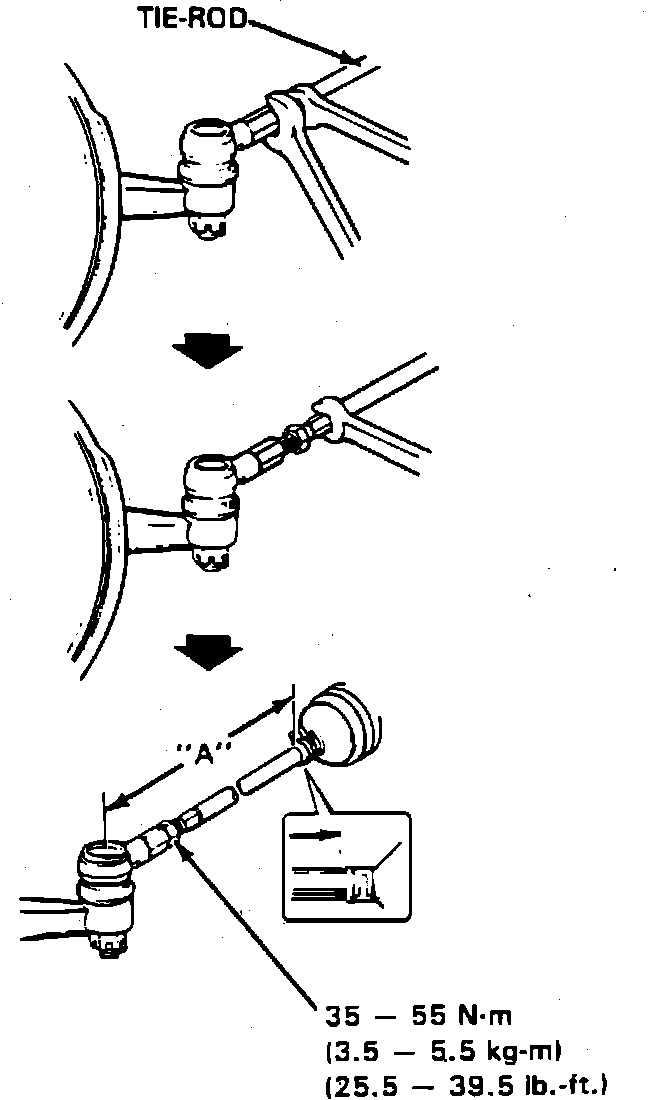 3. Turn right and left tie rods by the same amount to align toe to specification. Right and left tie rods should become equal in length.