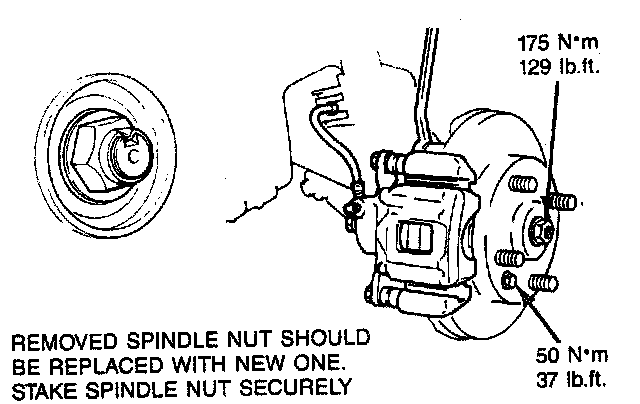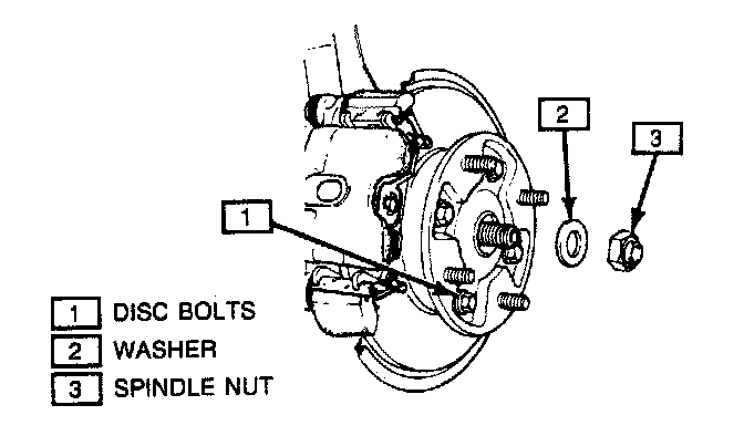 3. With foot brake pedal depressed by another person, loosen disc bolts until they can be turned by hand and remove spindle nut.