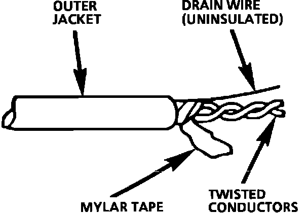 Twisted/shielded cable is sometimes used to protect wiring from electrical noise (stray signals). For example, two-conductor cable of this construction is used between the ECM and the distributor. The image above shows an example of a breakdown of twisted/shielded cable construction.