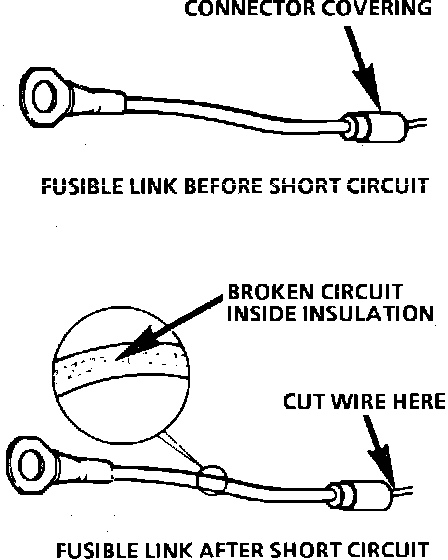 Not all fusible link open circuits can be detected by observation. Always inspect that there is battery voltage past the fusible link to verify continuity.