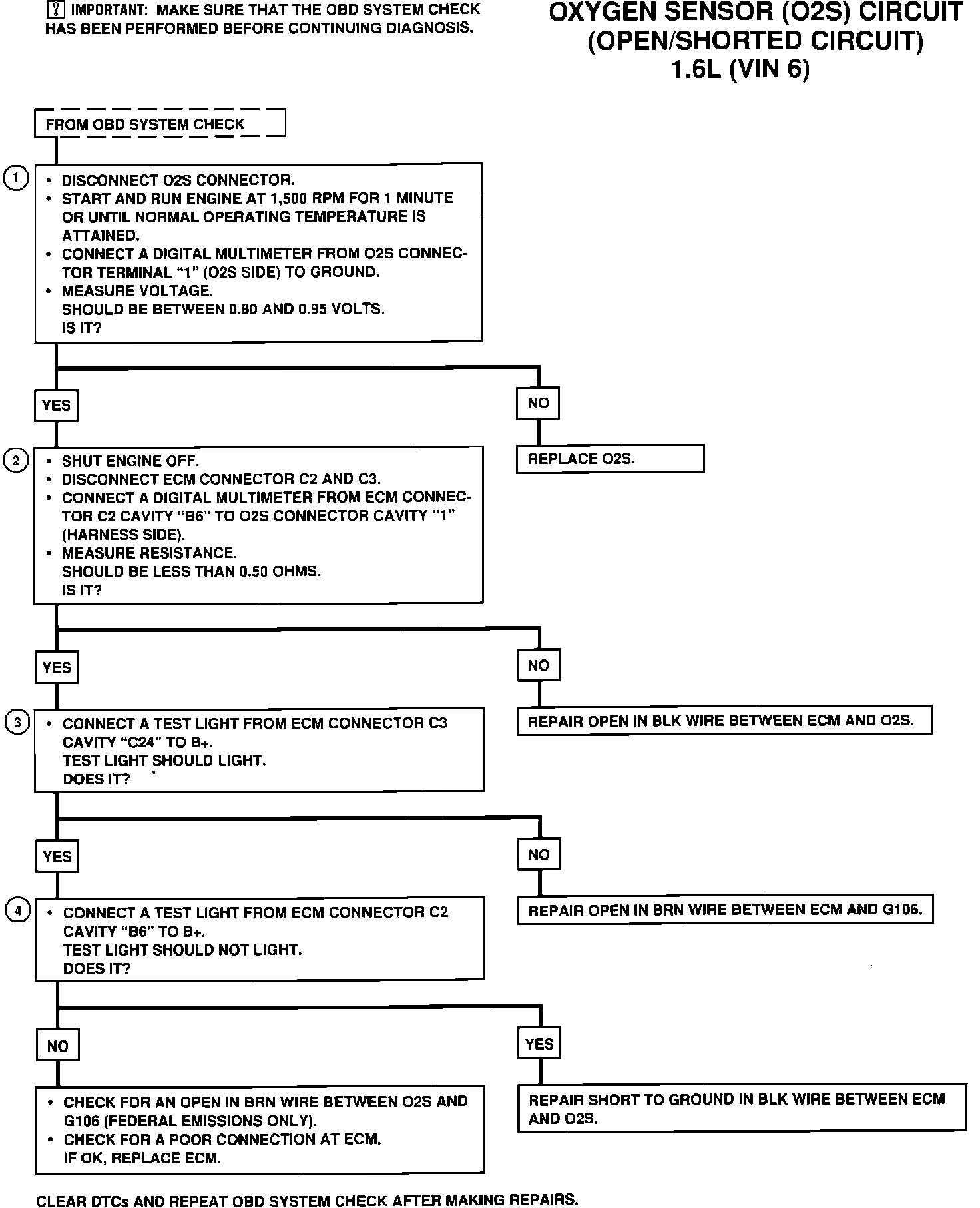 4. This checks for a short to ground in BLK wire between O2S and ECM, an open in BRN wire to the O2S on federal emissions vehicles and for a faulty ECM.
