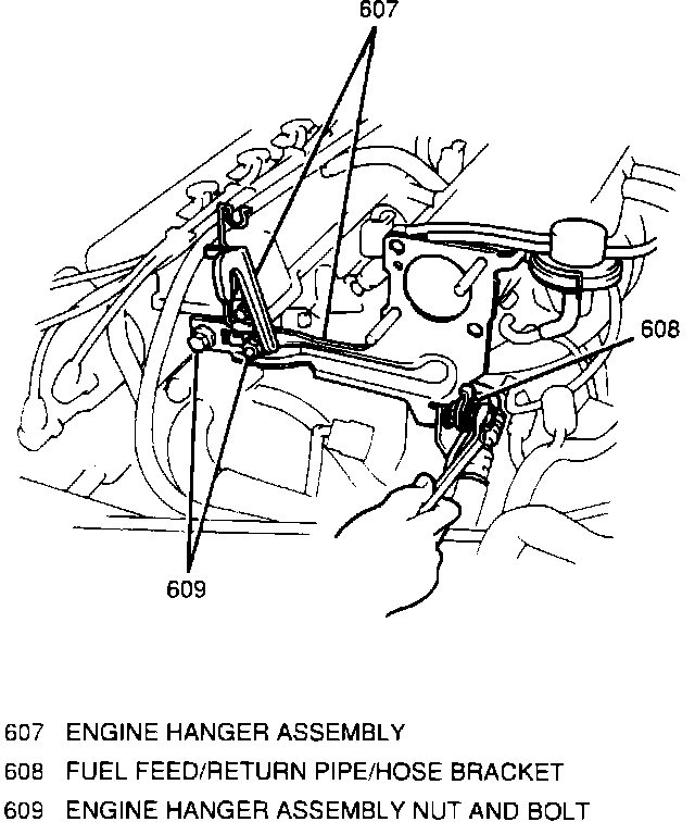 4. Engine hanger assembly to engine. Tighten hanger nut and bolt to 21 ft.lbs. (28 Nm).