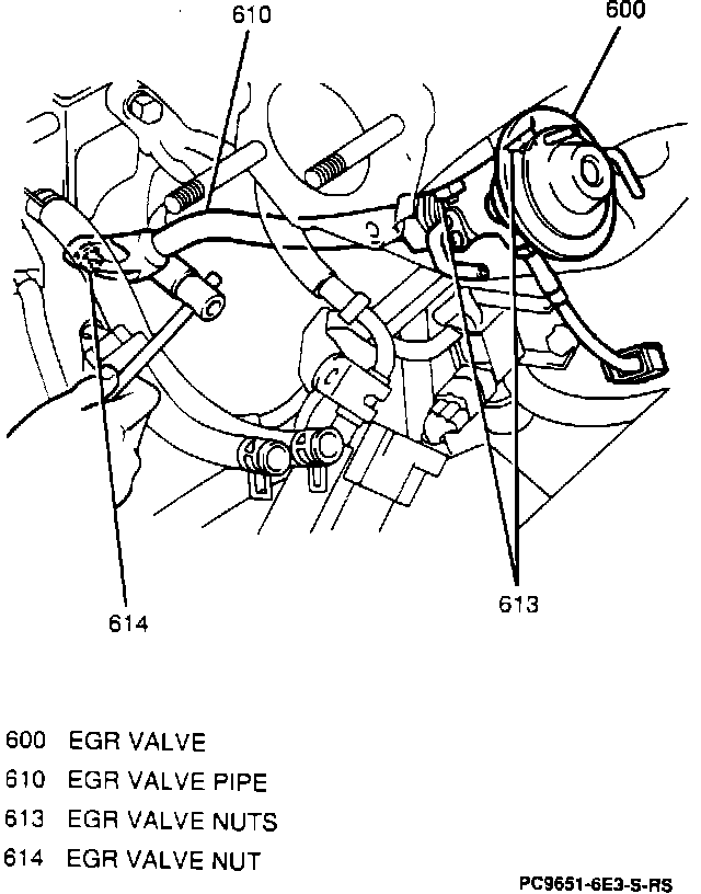 1. Two new gaskets, EGR valve and pipe to engine. Tighten EGR valve nuts to 9 ft.lbs. (13 Nm). Tighten EGR valve pipe nuts to 43 ft.lbs. (59 Nm).