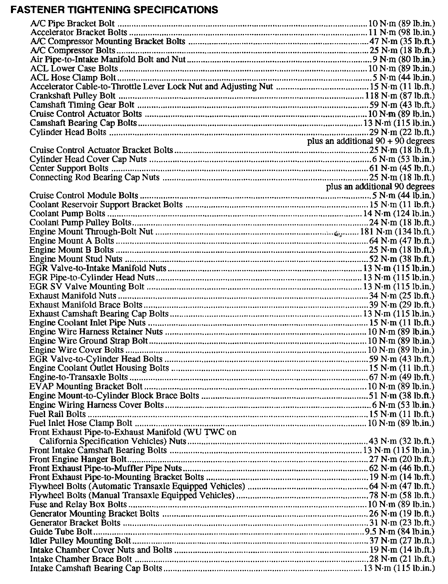Torque Specifications Continued: