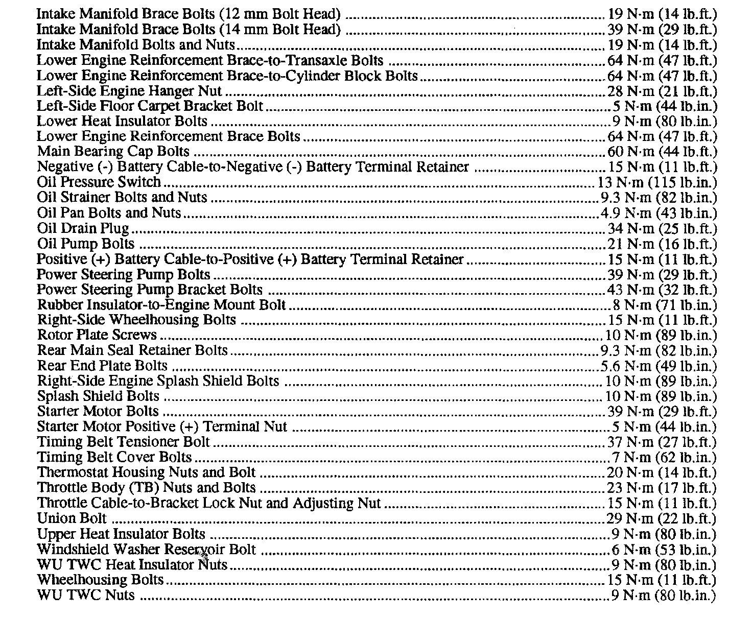 Fastener Tightening Specifications - Engine