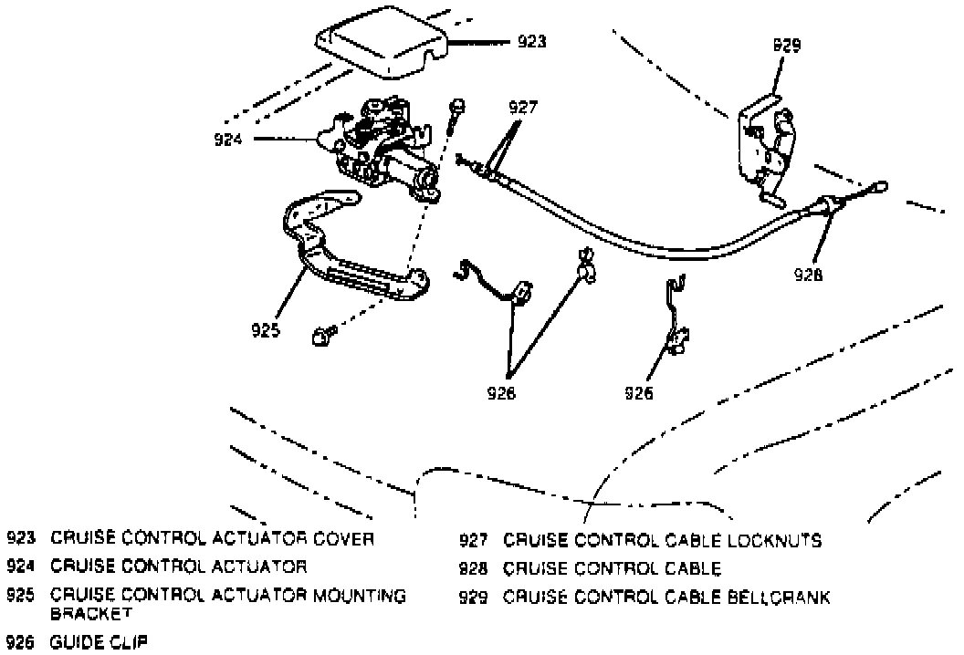 4. Remove cable from cruise control bellcrank above accelerator pedal, Fig. 27 .