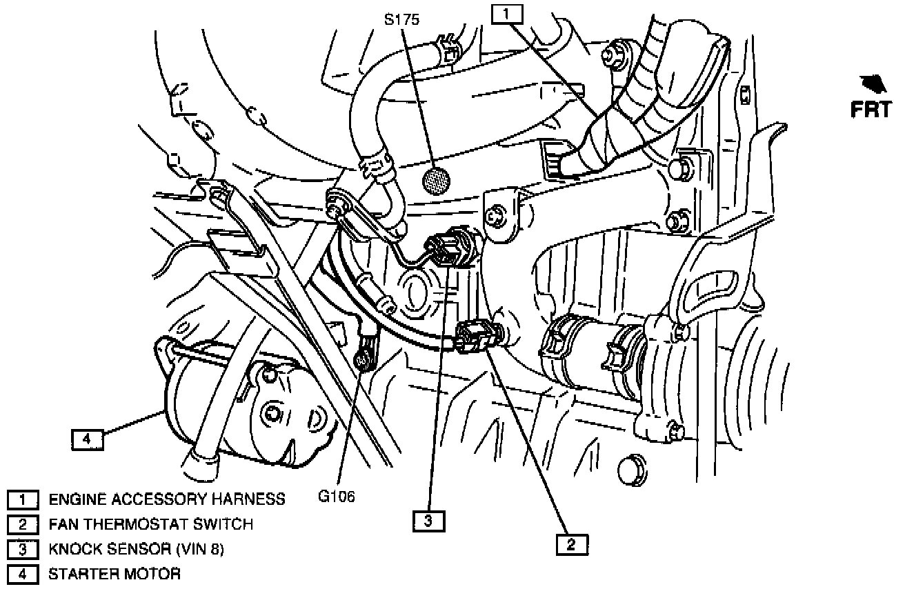 The knock sensor is mounted in the engine block at the rear of the engine.