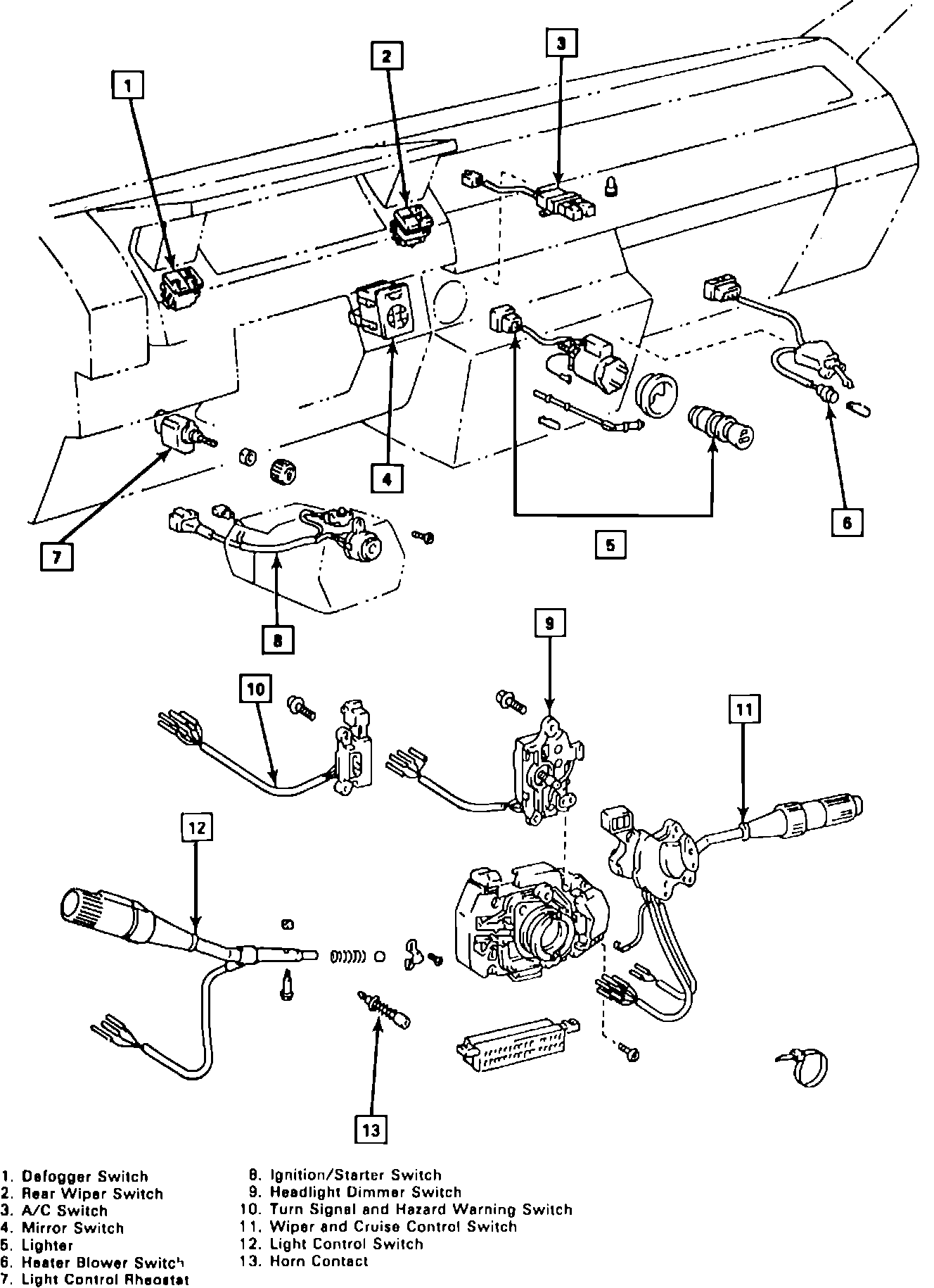 5. Remove combination switch assembly with steering column upper cover.