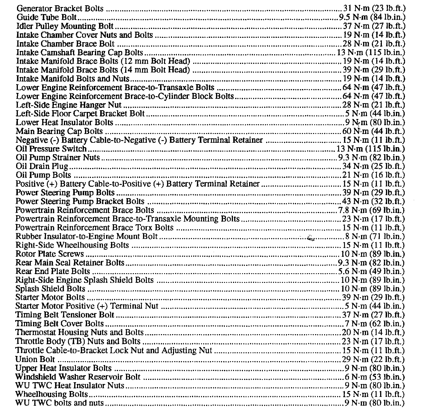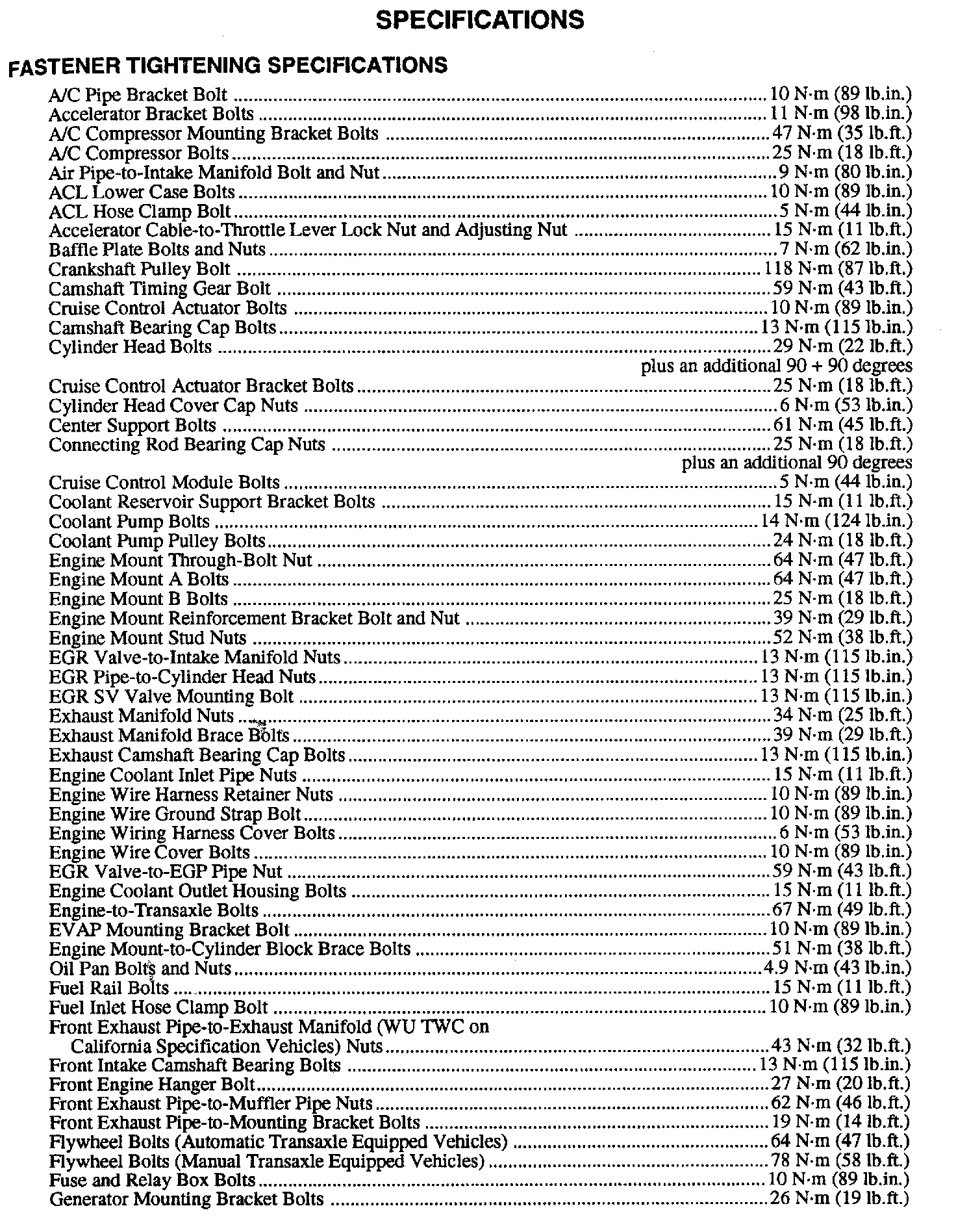 Torque Specifications Continued:
