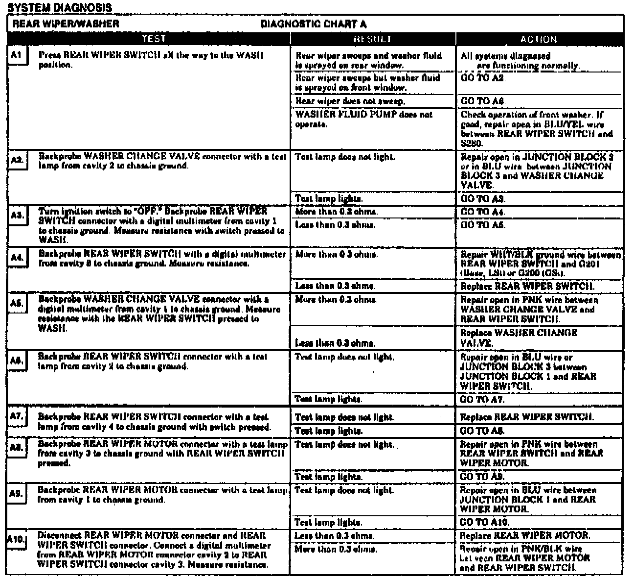Fig. 17 Rear Wiper System Diagnostic Chart.: