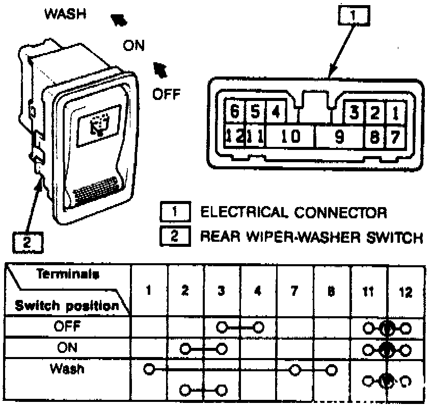 Fig. 18 Rear Wiper Switch Connections.: