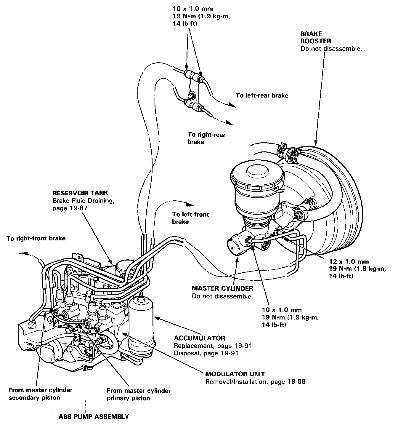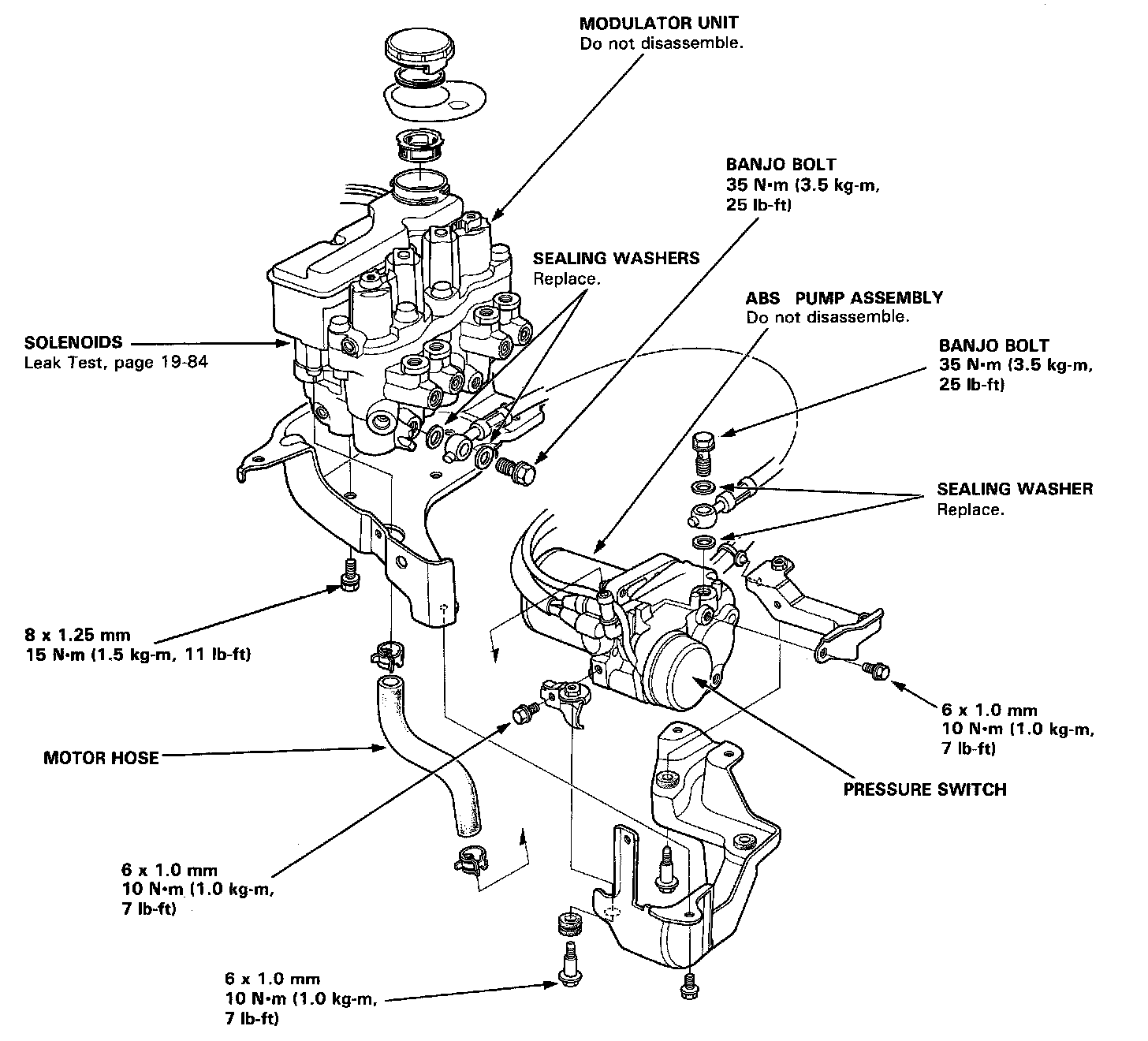 - Do not try to disassemble the modulator unit and pump assembly. Replace the modulator unit as an assembly if it is defective.