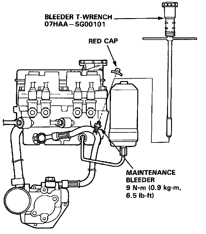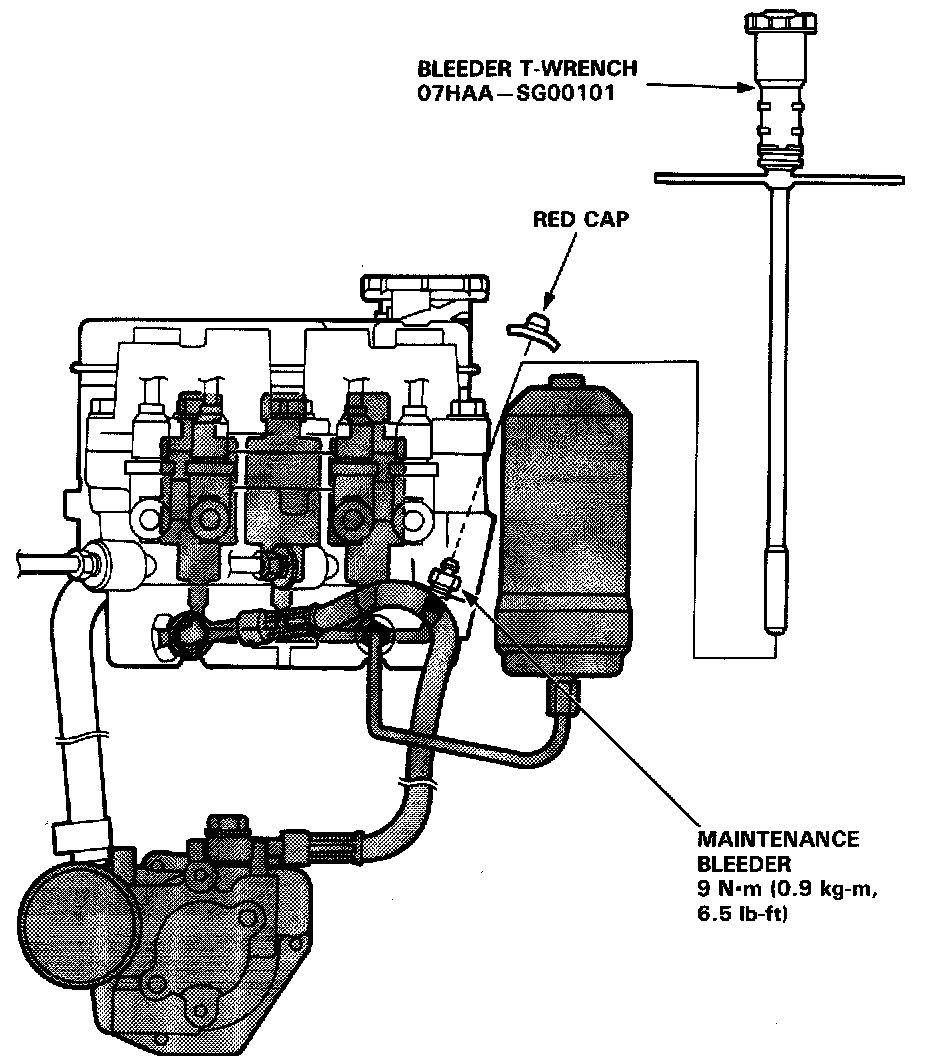 WARNING: Use the Bleeder T-wrench before disassembling the parts shaded in the illustration.