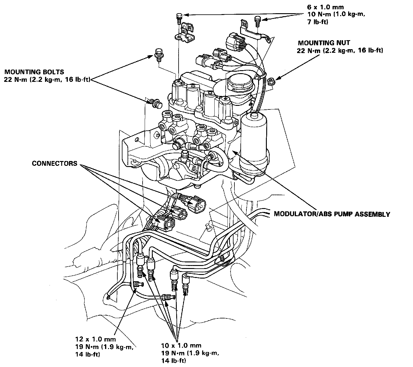 5. Install the modulator/ABS pump assembly in the reverse order of removal.