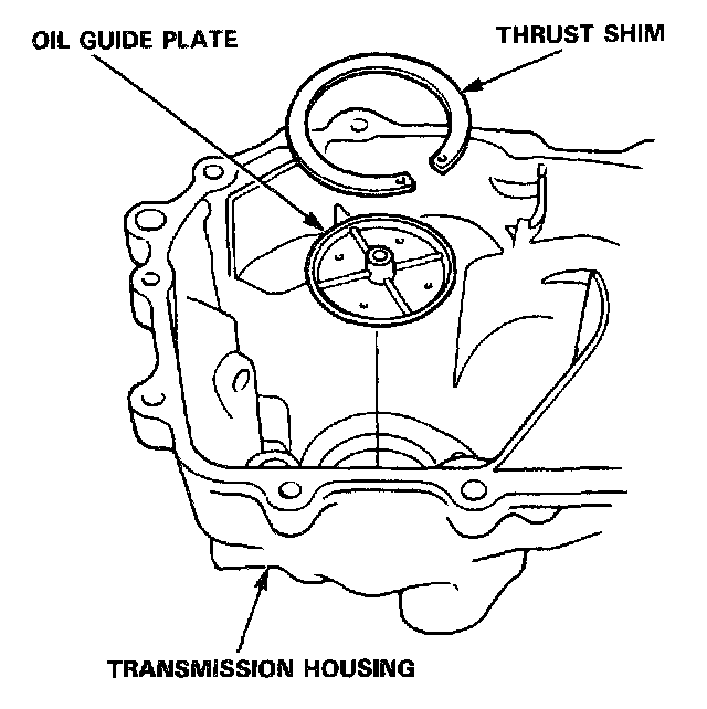 7. Remove the thrust shim and oil guide plate from the transmission housing.