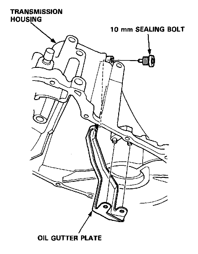 8. Remove the 10 mm sealing bolt and oil gutter plate.