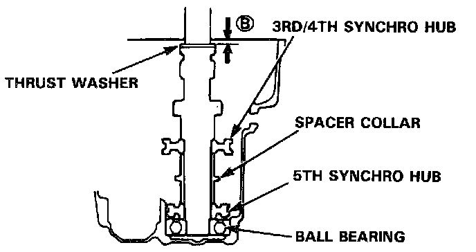 3. Measure the distance (B) between the end of the transmission housing and thrust washer.
