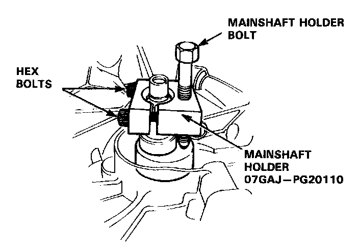 - Back-out the mainshaft holder bolt and loosen the two hex bolts.