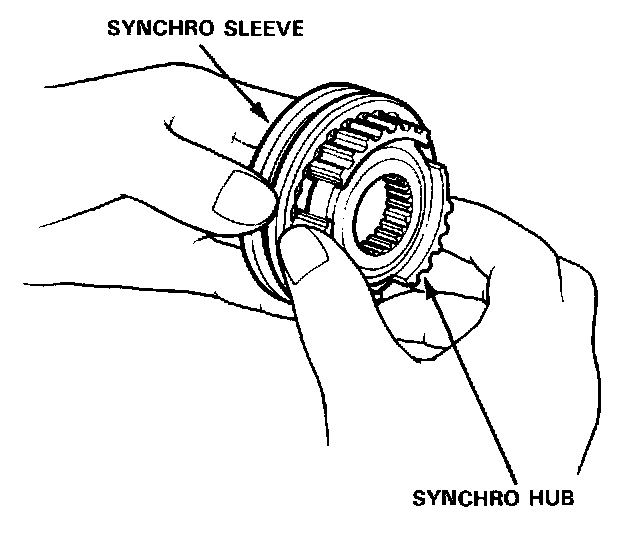 2. Install each synchro hub in its mating synchro sleeve and check for freedom of movement.
