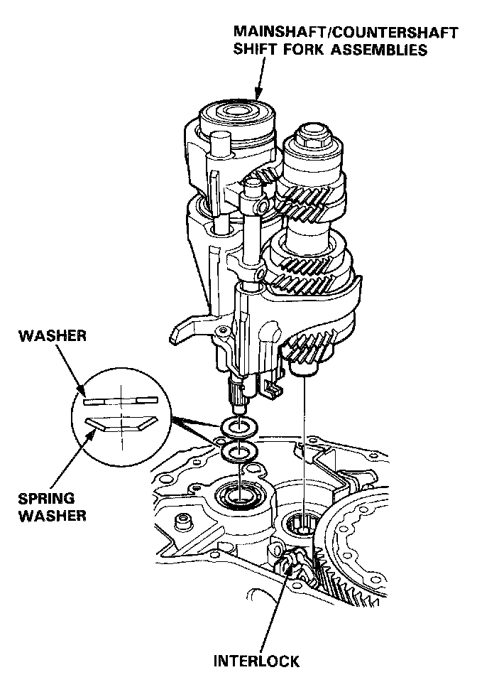 12. Install the mainshaft, countershaft, and shift fork assemblies.