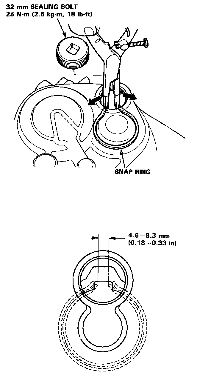 NOTE: Apply liquid gasket (P/N 08718 - 0001) to the threads of the 28 mm plug bolt and interlock guide bolt.