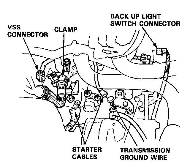 6. Disconnect the back-up light switch connector and vehicle speed sensor (VSS) connector.
