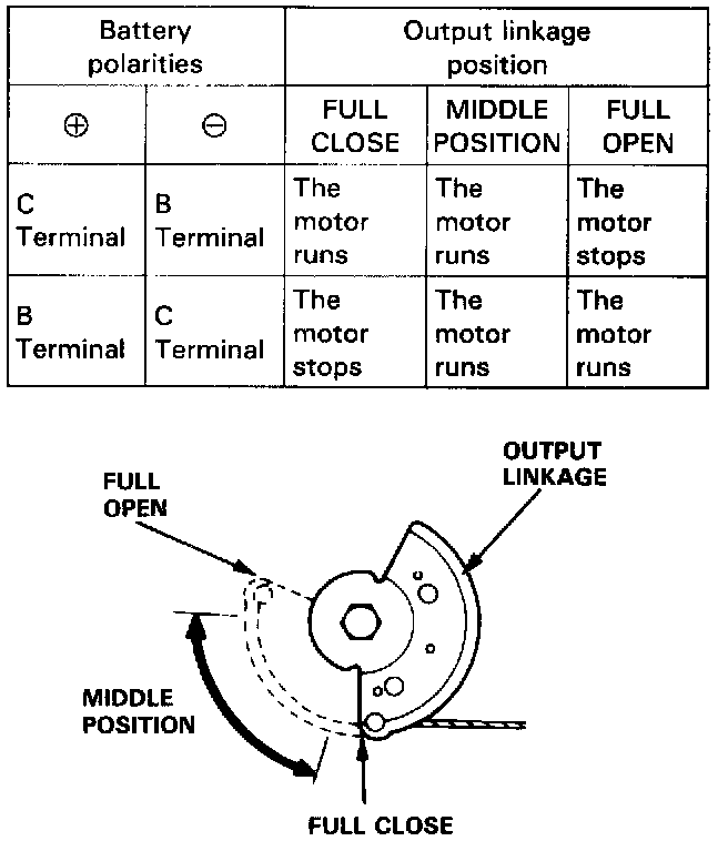 6. Check the operation of the actuator motor in each output linkage position according to the table. You should be able to hear the motor.