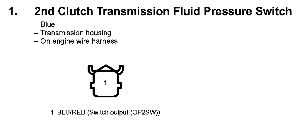 1. 2nd Clutch Transmission Fluid Pressure Switch: