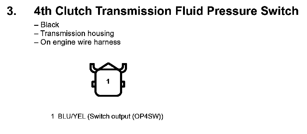 3. 4th Clutch Transmission Fluid Pressure Switch:
