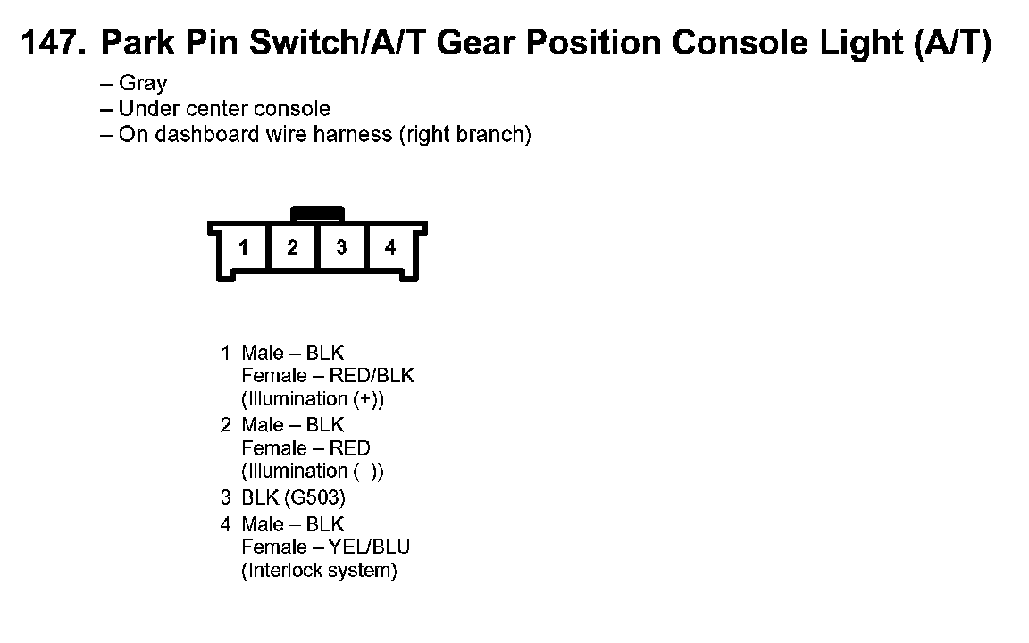 147. Park Pin Switch/A/T Gear Position Console Light (A/T):