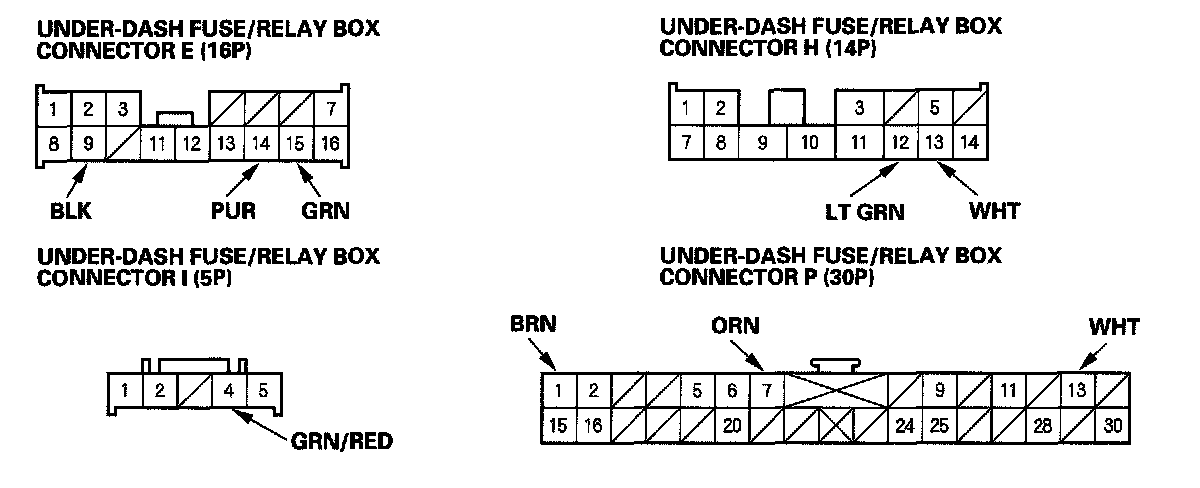 7. Turn the ignition switch to ON (II) to keep the system awake and make these input tests at the appropriate connectors on the under-dash fuse/relay box