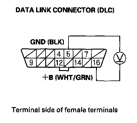 1. Measure voltage between DLC terminal No.16 and body ground.
