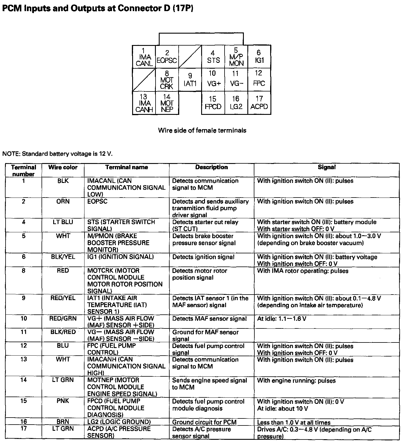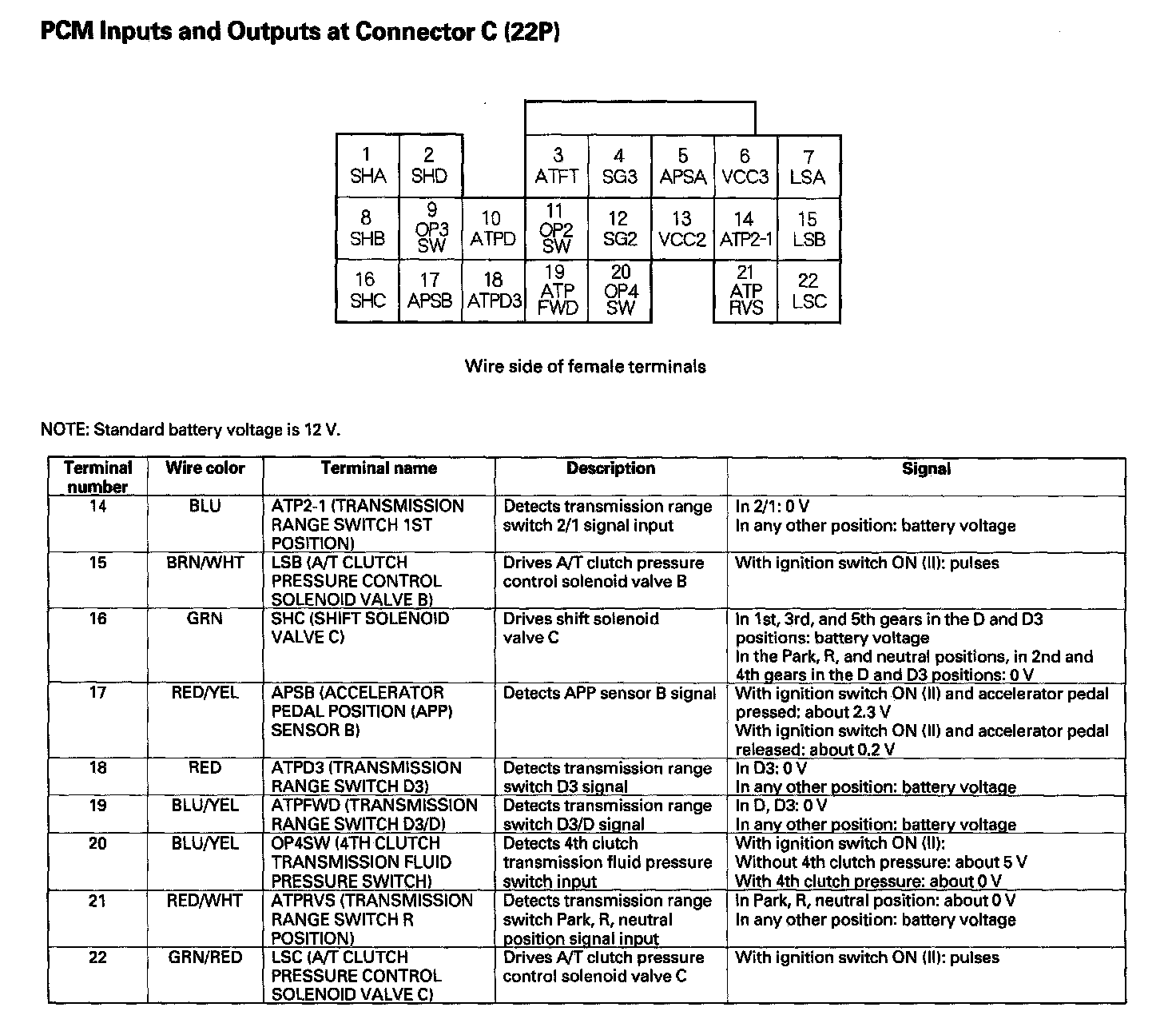 PCM Inputs And Outputs At Connector C (22P) Part 1: