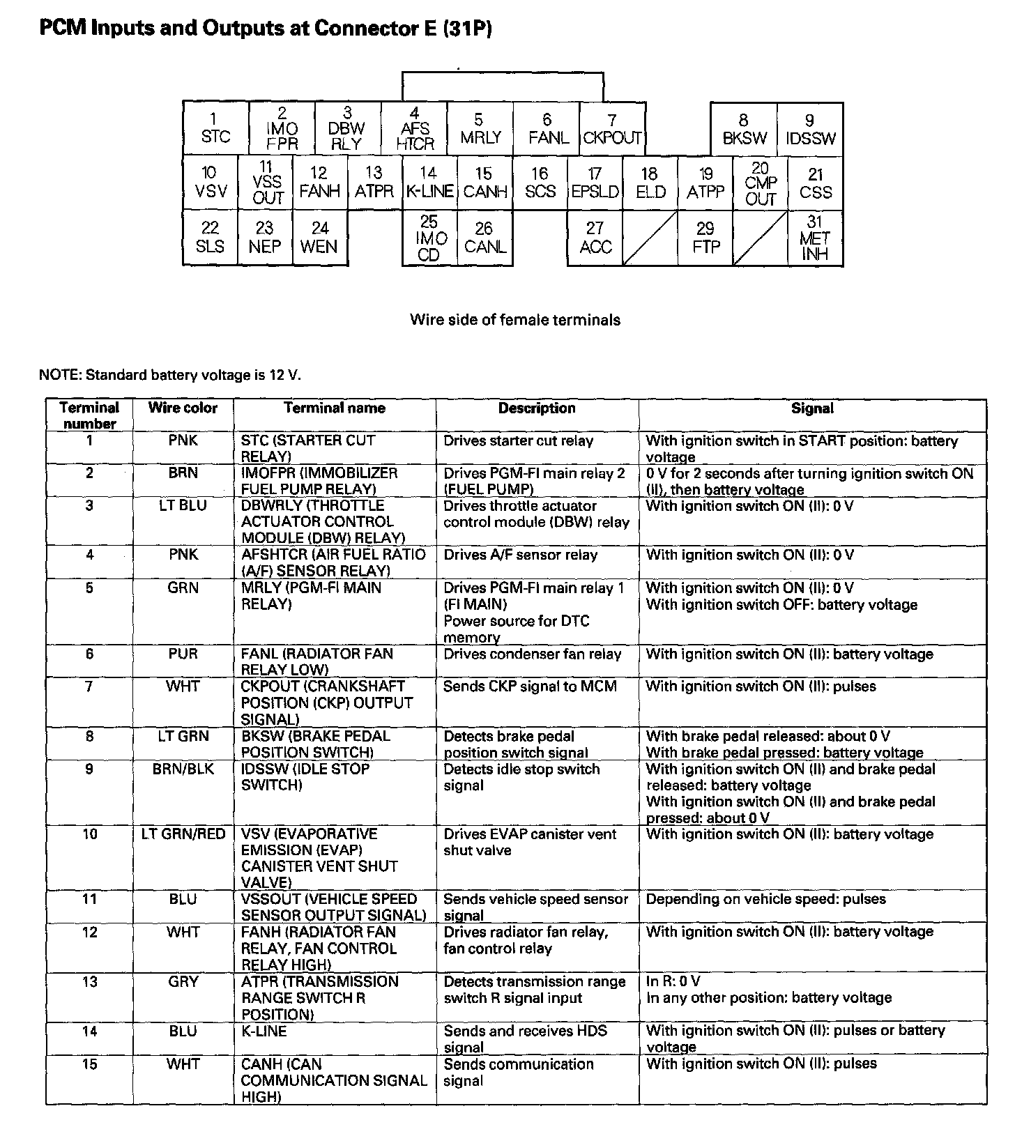 PCM Inputs And Outputs At Connector E (31P) Part 1: