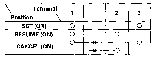 - If there is continuity, and it matches the table, but switch failure occurred on the cruise control unit input test, check and repair the switch circuit.