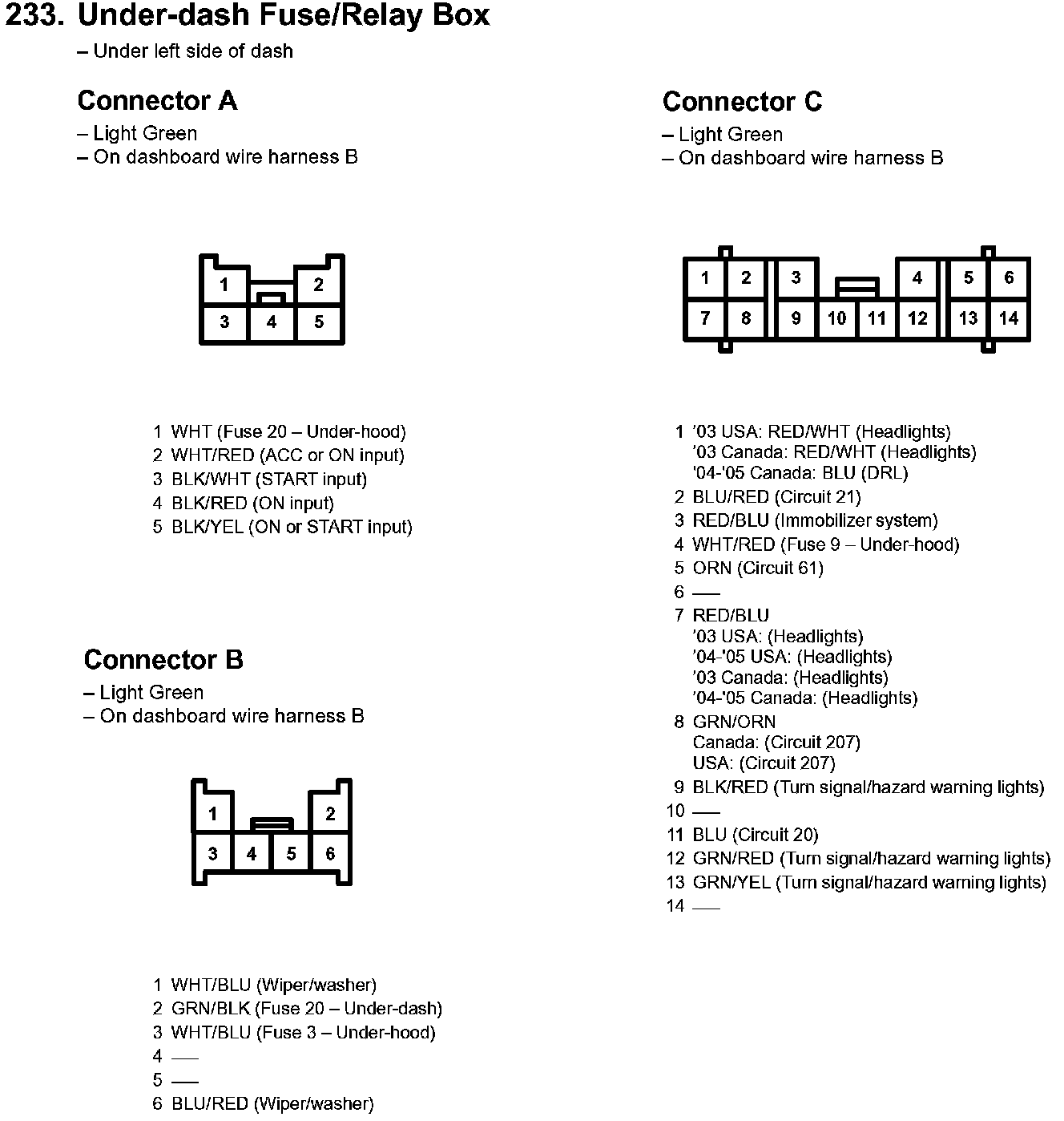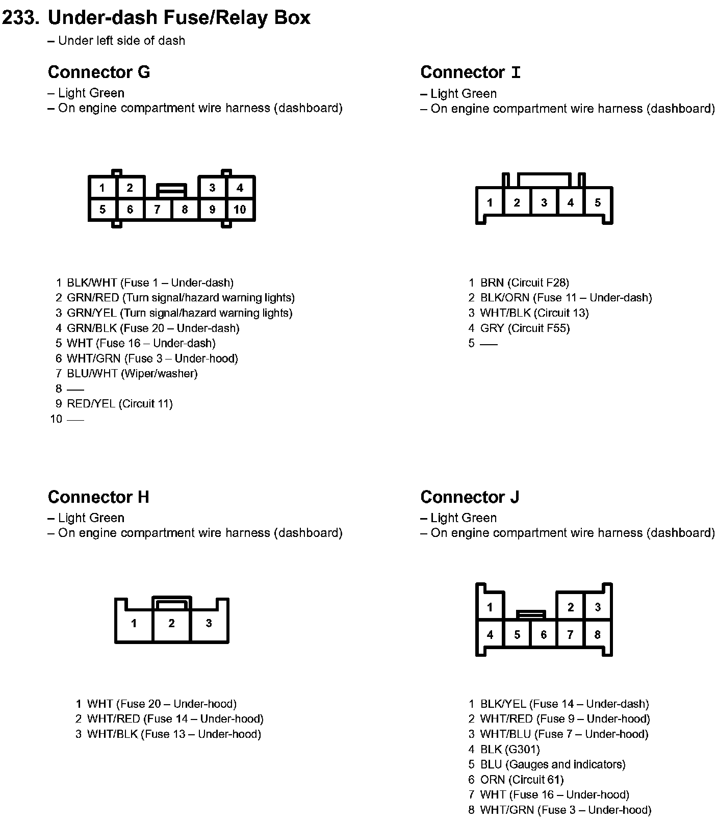 233. Under-dash Fuse/Relay Box Part 1: