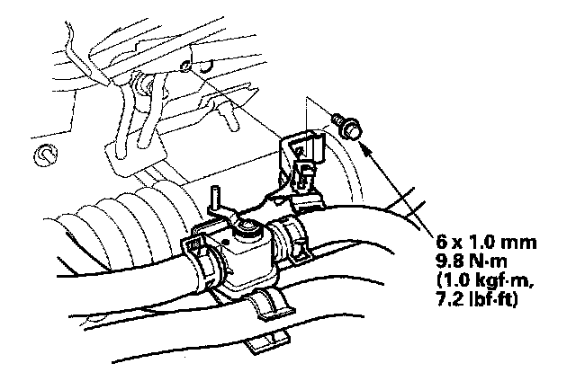 7. Remove the mounting bolt and the heater valve as shown.